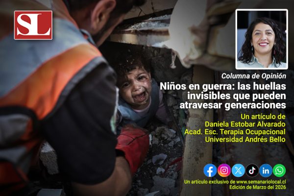 marzo 10, 2026 Niños en guerra: las huellas invisibles que pueden atravesar generacionesLa exposición a la violencia, el miedo constante, la pérdida de seres queridos o la separación familiar interrumpen las condiciones de seguridad necesarias para el desarrollo. Leer Más Internacional, Nacional, Opinión, Política internacional #SemanarioLocal, Información, Noticias, Región de los Lagos