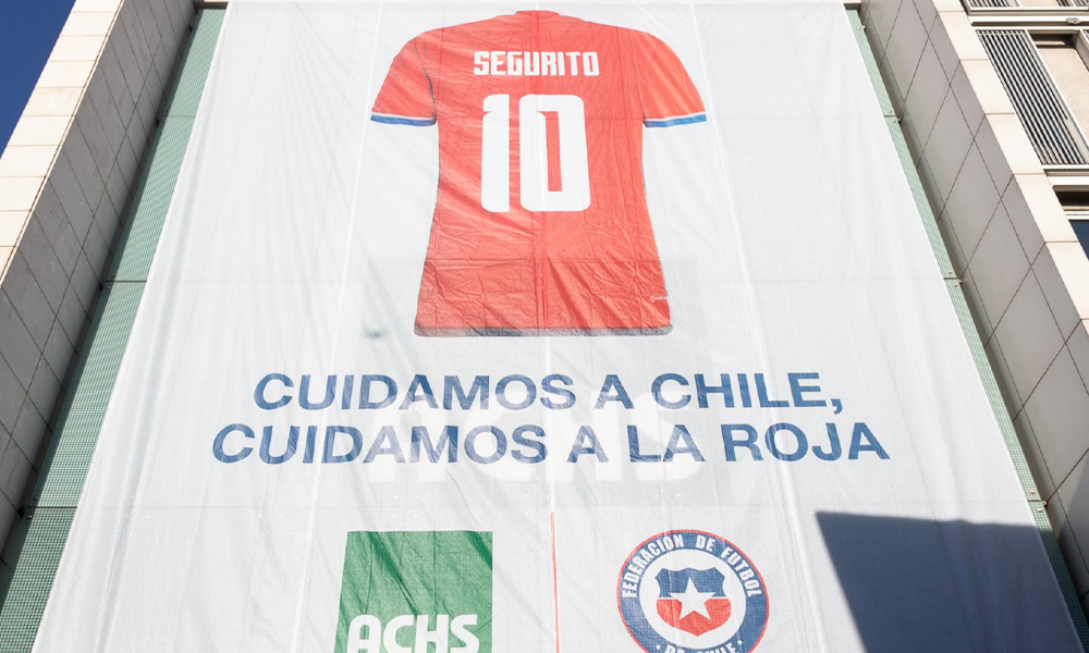 Este lunes 27 de marzo la esquina de Bustamante con Bilbao amaneció con una camiseta gigante de la selección con el nombre de Segurito. ¿La razón? celebrar la firma del acuerdo que convierte a la Asociación Chilena de Seguridad (ACHS) en el nuevo auspiciador de la Selecciones Nacionales de Fútbol de Chile durante los próximos cuatro años.