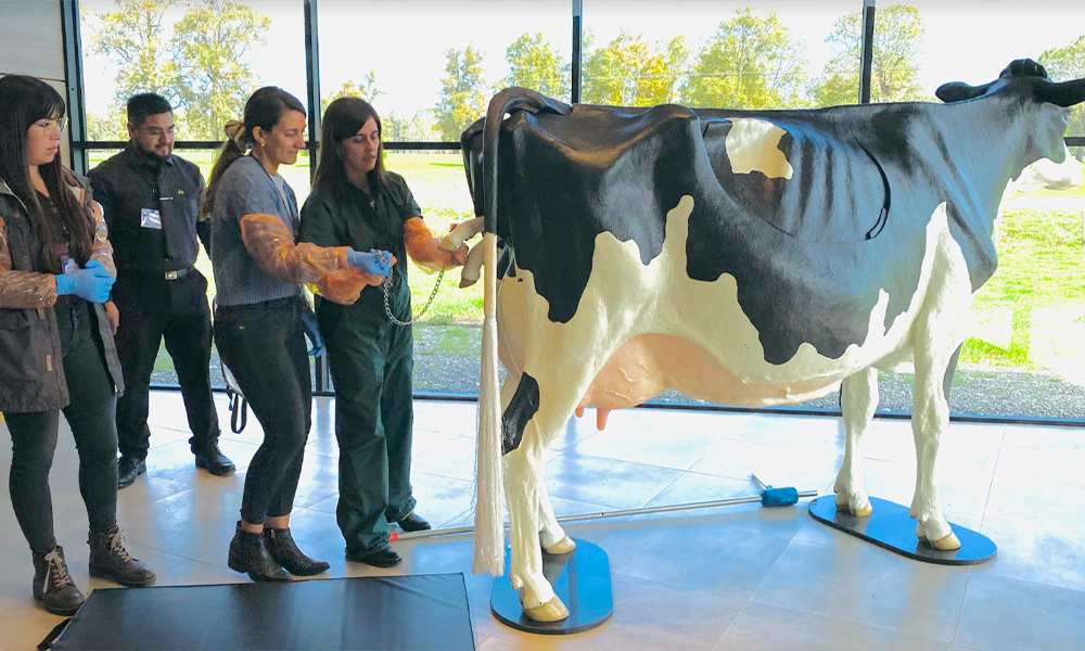 Es así como esta vaca de tamaño real, con útero, ubre y un ternero 40 kg de peso, fabricada en Canadá, podrá ser utilizada para la capacitación de colaboradores encargados de partos, estudiantes de liceos técnicos agropecuarios, estudiantes universitarios del área agropecuaria y veterinaria, y para personas que quieran adquirir una técnica en esta área.