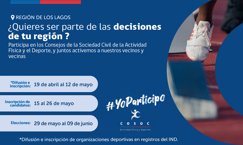 La Seremi del Deporte, Carolina Urrutia, invita a la comunidad a inscribirse para integrar el Consejo de la Sociedad Civil en la Región de Los Lagos, cuyo proceso estará abierto desde el 15 al 26 de mayo del presente año.
