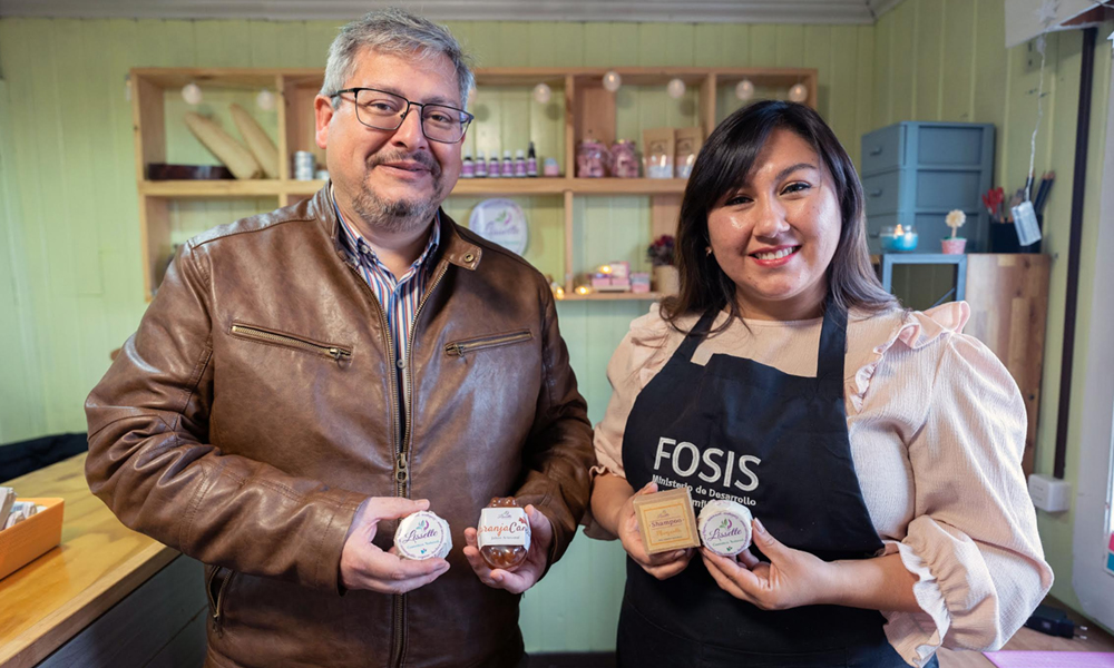 A nivel regional, el Director Regional del FOSIS, Pablo Baeza, conoció el trabajo de Cinthya Vega, creadora de Lissette Cosmética Natural, quien recientemente participó en el programa Emprendamos Semilla.
