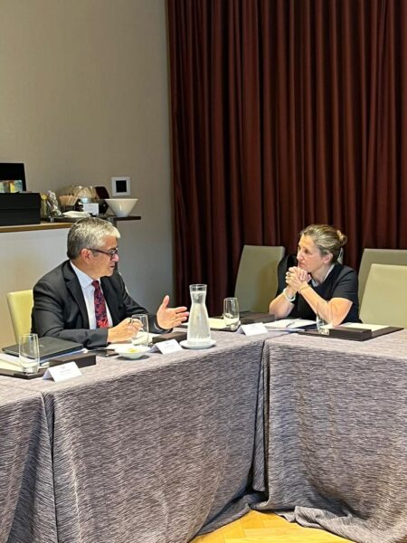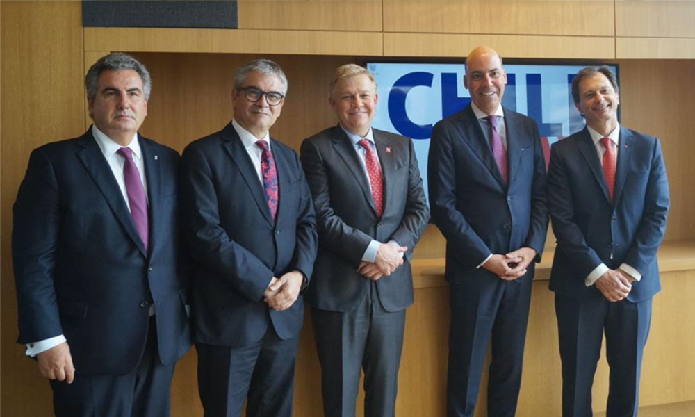 Y para finalizar el día, el ministro se reunió con James Neate, CEO y Corporate Investemt Bank de Scotia, en un saludo protocolar que también sirvió para hablar sobre la inversión extranjera en Chile y las energías renovables.