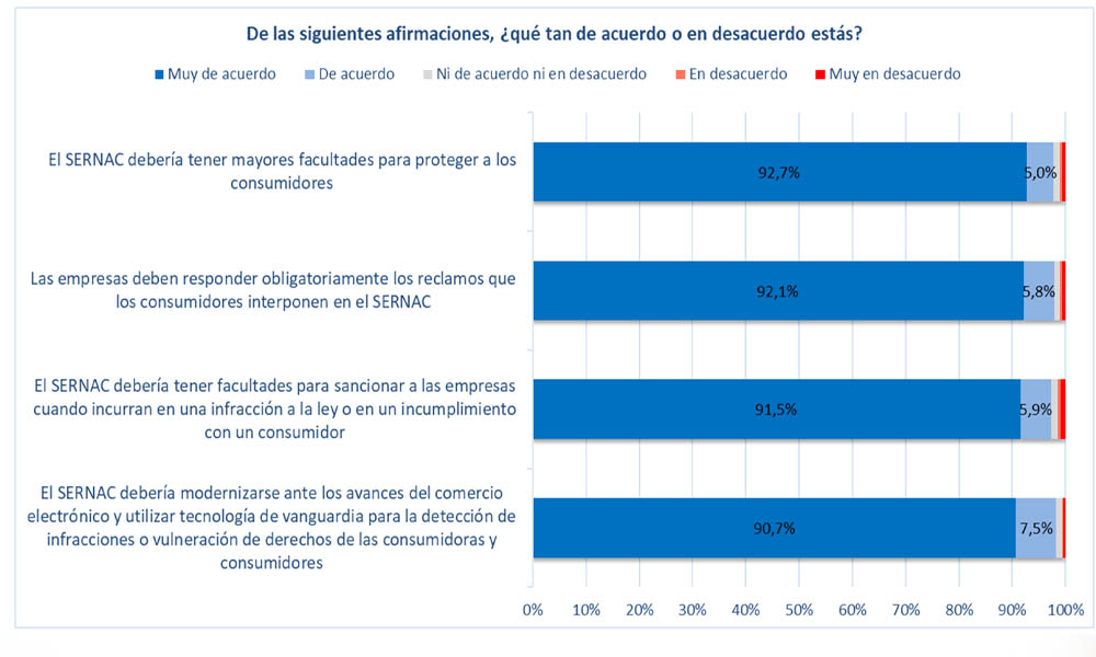 - Esto se suma a que un 92,1% señala que las empresas deben responder obligatoriamente los reclamos de los consumidores interpuestos en el SERNAC