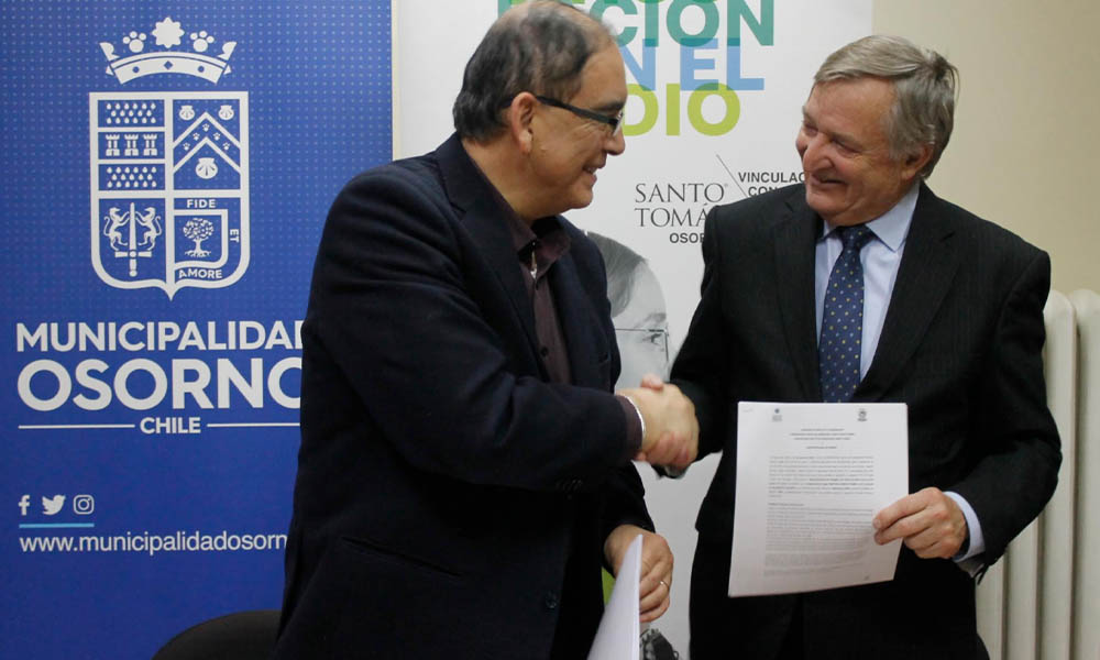Con el propósito de potenciar el desarrollo laboral de las y los estudiantes del IP y CFT Santo Tomás de Osorno y en beneficio de la ciudadanía local, las Instituciones de Educación Superior antes mencionada firmaron un convenio de colaboración con la I. Municipalidad de Osorno destacando por ejemplo cupos para prácticas profesionales y para la acción asistencial docente de los estudiantes de pregrado de carreas técnicas y profesionales que impartan el IP y CFT en sede Osorno.
