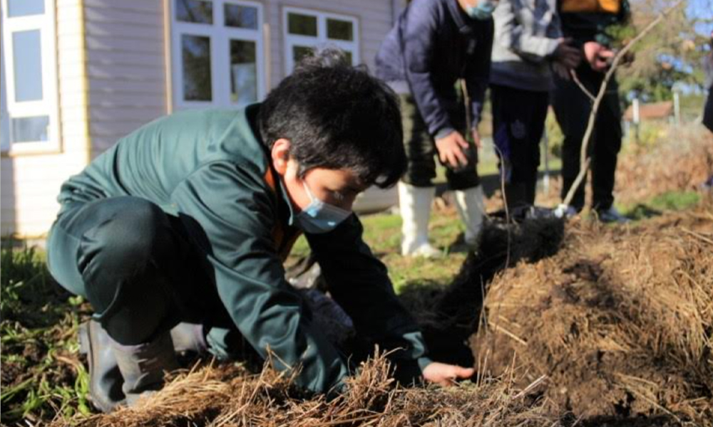 “Un bosque en mi escuela” logró conectar a la comunidad escolar con el aprendizaje de técnicas de agricultura regenerativa a través de la formación de un bosque huerto de 100 mts2, en un trabajo colaborativo en el que intervinieron estudiantes de 3° a 5° básico de las escuelas “Rural Colegüal” de Llanquihue y “Vicente Pérez Rosales” de Frutillar.