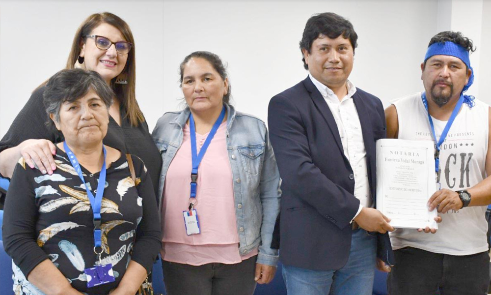 Hasta la Dirección Nacional de CONADI, ubicada en Temuco, llegó la directiva de la comunidad Cocauque de Quellón, integrada por Elías Colivoro Chiguay, presidente; Gabriela Chiguay Gavie; y Victoria Ruiz Cayún, secretaria, para firmar las escrituras de las tierras en un proceso que iniciaron en 2010 ante CONADI, para restituir las tierras que en 1823 les cedió la corona española a sus antepasados a través de un título de realengo.