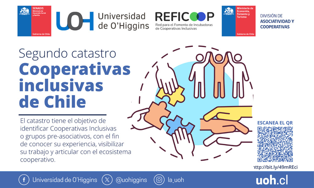 Esta iniciativa, liderada por el Servicio Nacional de la Discapacidad (SENADIS) y la Red para el Fomento de Incubadoras de Cooperativas Inclusivas (REFICOOP), a través de la implementación de la Universidad de O’Higgins (UOH) y la colaboración de la División de Asociatividad y Cooperativas (DAES) del Ministerio de Economía, Fomento y Turismo; busca además de recopilar datos, fortalecer la comunidad de cooperativas inclusivas y destacar su papel fundamental en el fomento del trabajo inclusivo y la equidad en el país.