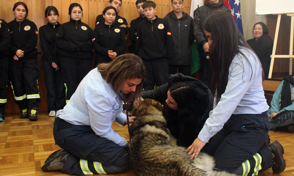 El taller de dos horas y media de duración fue impartido por la voluntaria de Octava Compañía y médico veterinario Daniela Alvarado, quien explicó que “este es el primer año en que los aspirantes están incluidos en esta capacitación de rescate y primeros auxilios de animales en emergencias, actividad en la que participaron cerca de 100 futuros voluntarios de Bomberos de Puerto Montt”.