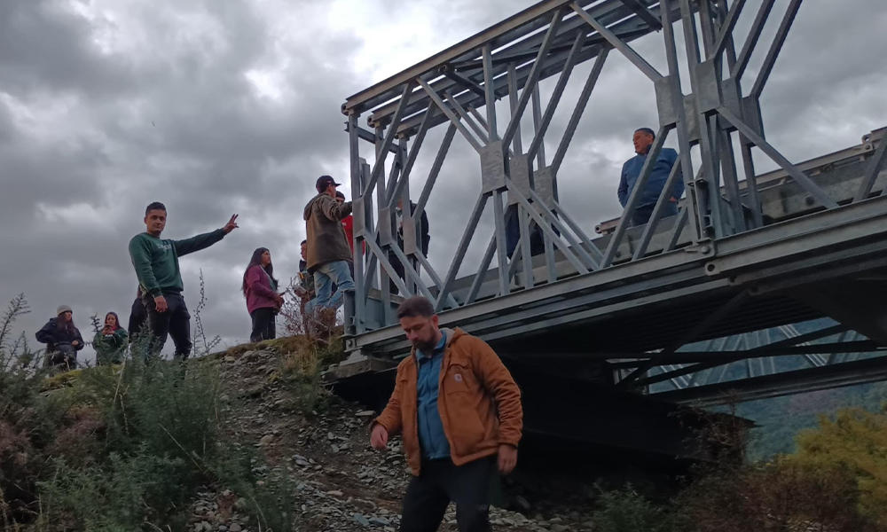 De esta manera, Matías Gómez, Camila Oyarzún, Macarena Puyado y Bastián Segovia, respondieron al llamado de la Fundación Para La Superación de la Pobreza, para ir en ayuda de la comunidad de Buil, para recomponer y recuperar la imprescindible pasarela peatonal, que para sus beneficiarios tiene un valor patrimonial. Pasarela que fue construida a pulso, por los antepasados de la misma comunidad de Buill, integrada por pueblos originarios de huilliches, lafkenches y mapuches. “Es una pasarela icónica, porque antes de que se construyera la primera pasarela en los 70’ , la gente tenía que cruzar el río Buill y pasaba cargando sus productos a pie y eso era peligroso. Entonces, la pasarela que construyeron da cuenta de la historia de la comunidad y del vínculo con los antepasados que la construyeron”, comentó Mario Bizama, coordinador territorial programa Servicio País Los Lagos.