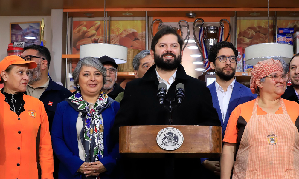 Junto a los ministros del Trabajo, Hacienda y Economía (S), Jeannette Jara, Mario Marcel y Javiera Petersen, respectivamente, y el alcalde de Independencia, Gonzalo Durán, el jefe de Estado visitó la Panadería Olimpia en esta comuna, lugar en que compartió con las y los trabajadores y explicó los alcances de la nueva ley que impactará a 800 mil familias. En la actividad, también participó el subsecretario del Trabajo, Giorgio Boccardo, y el subsecretario de Previsión Social, Claudio Reyes, además del diputado Luis Cuello y la directiva de la Central Unitaria de Trabajadores (CUT), encabezada por su presidente, David Acuña.