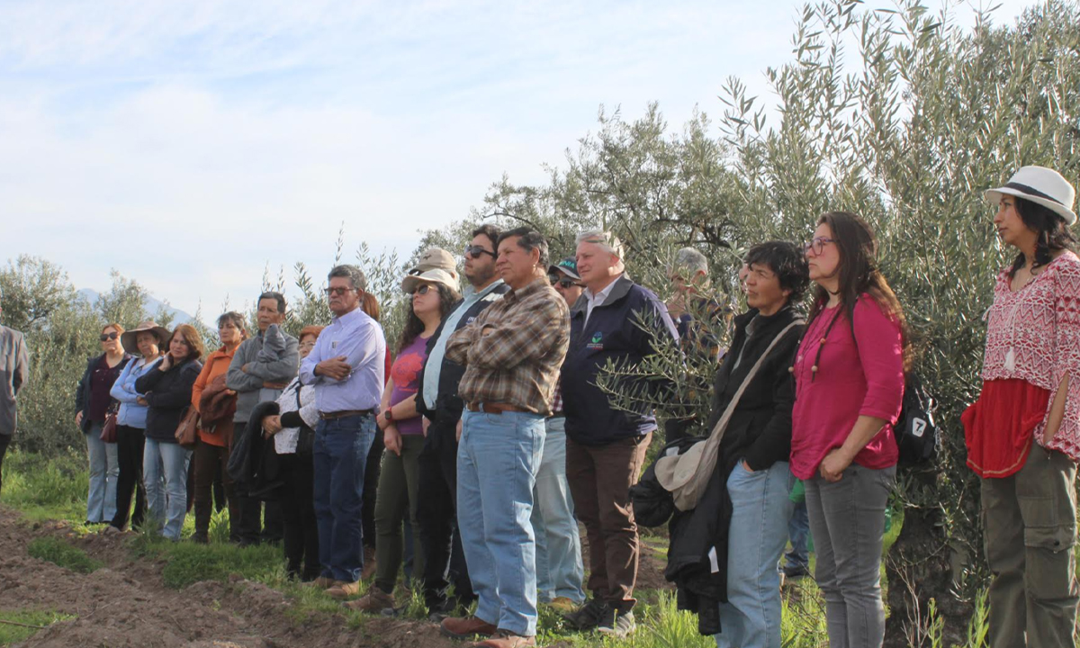 El especialista explicó las opciones productivas adaptadas al cambio climático. Hernán Herrera, un agricultor de la zona, compartió su experiencia con el cultivo de olivos, que es conocido por su resistencia al estrés hídrico, aunque su productividad puede verse afectada en condiciones de escasez de agua. Durante el recorrido por su huerto, se discutieron estrategias para mejorar la producción a lo largo de los años, incluyendo la poda adecuada antes de la floración.