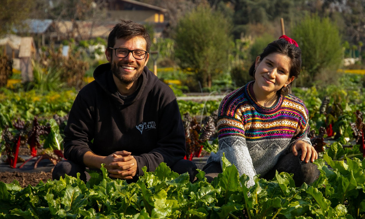 En 2019, el profesor de música Óscar Contreras (35) y la ingeniera comercial Camila Pinto (32) se encontraban viajando por diferentes razones por Australia y de manera fortuita, por esas cosas de la vida, se conocieron en un hostal de Melbourne. Además de buenas migas, hicieron match y, sin mayor preámbulo, decidieron regresar de la mano a Chile para iniciar un proyecto de vida en común y también para crear el emprendimiento De Huerta a la Raíz, que hoy los tiene cultivando la tierra y haciendo delivery de hortalizas agroecológicas por distintas comunas de la Región Metropolitana.