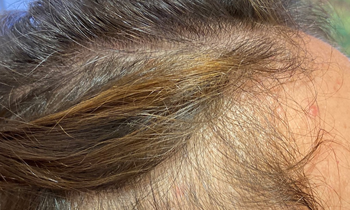 Otro tipo es la alopecia frontal fibrosante, que afecta con más frecuencia a mujeres mayores. Su pérdida de cabello es progresiva, muy lenta, y normalmente parte en las cejas. Se caracteriza por la caída de pelo en la zona frontal de la cabeza y las sienes, lo que se conoce como el “efecto diadema”. Hasta hace poco era casi desconocida, pero hoy es cada vez más frecuente y se desconoce por qué está aumentando.
