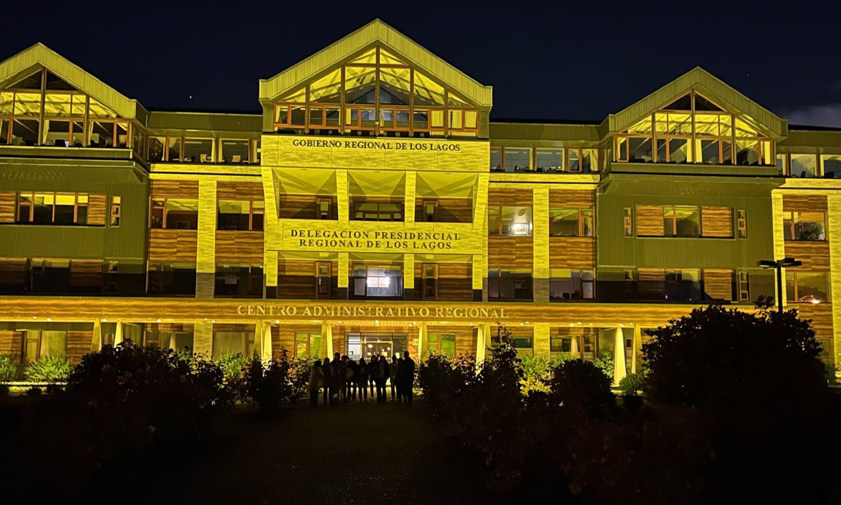 15 de Febrero del 2025.- En el marco del Día Internacional del Cáncer Infantil, la medianoche del 15 de febrero el edificio del Centro Administrativo Regional (CAR) se iluminó de color dorado, como símbolo de apoyo a los niños, niñas y adolescentes que enfrentan esta enfermedad y sus familias. Esta iniciativa fue posible gracias al respaldo del Gobierno Regional de Los Lagos y el Consejo Regional, reafirmando su compromiso con la visibilización de esta causa y la importancia del diagnóstico temprano y el acceso oportuno a tratamientos.