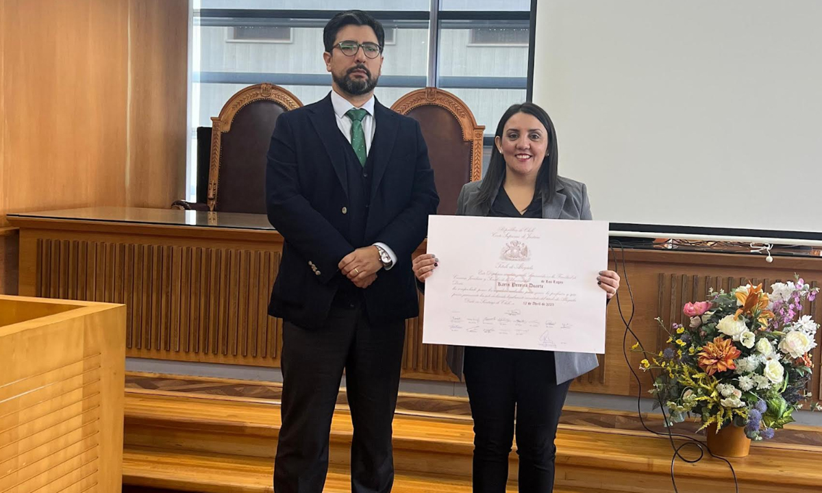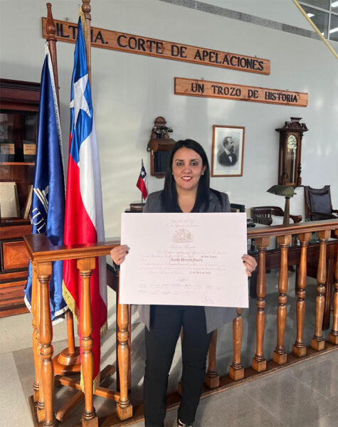 La solemne ceremonia se llevó a cabo en dependencias de la Corte de Apelaciones en Valdivia hasta donde llegó la egresada de la Universidad acompañada de su familia, de sus dos hijas, para culminar un proceso tan importante que inició en 2019 cuando ingresó a la carrera apostando por la Universidad de Los Lagos que recientemente abría este programa de estudios.