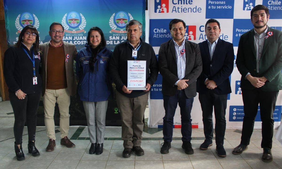 09 de junio del 2025.- En una ceremonia realizada en la localidad de Puaucho, el Instituto de Previsión Social (IPS), junto a la Ilustre Municipalidad de San Juan de la Costa, inauguró oficialmente dos nuevos Puntos de Atención Virtual (PAV) de la red ChileAtiende: uno en Puaucho y otro en Misión San Juan. Esta alianza busca acercar el Estado a territorios apartados, permitiendo que vecinos y vecinas puedan acceder a prestaciones sin tener que trasladarse a otras comunas.