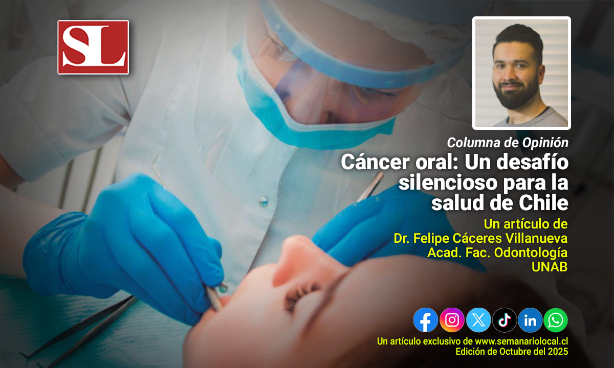 03 de octubre del 2025.- En Chile equivale al 1,6% de los diagnósticos oncológicos y, a nivel global, se ubica en el puesto número 16 entre los más frecuentes. Su presencia se concentra principalmente en hombres, con una incidencia 2,5 veces mayor que en mujeres, y casi siempre se presenta en forma de carcinoma oral de células escamosas, que reúne cerca del 98% de los casos.