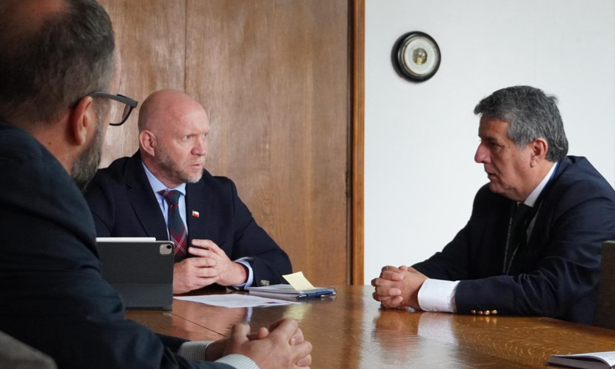 10 de Abril del 2026.- El Gobernador Regional de Los Lagos, Alejandro Santana, abordó el estado actual del proyecto de reposición del Liceo Carmela Carvajal de Osorno, tras sostener una reunión con el director nacional de Arquitectura del Ministerio de Obras Públicas (MOP), James Fry, junto a su equipo técnico y jurídico, instancia en la que se revisaron los principales aspectos pendientes para destrabar la iniciativa.