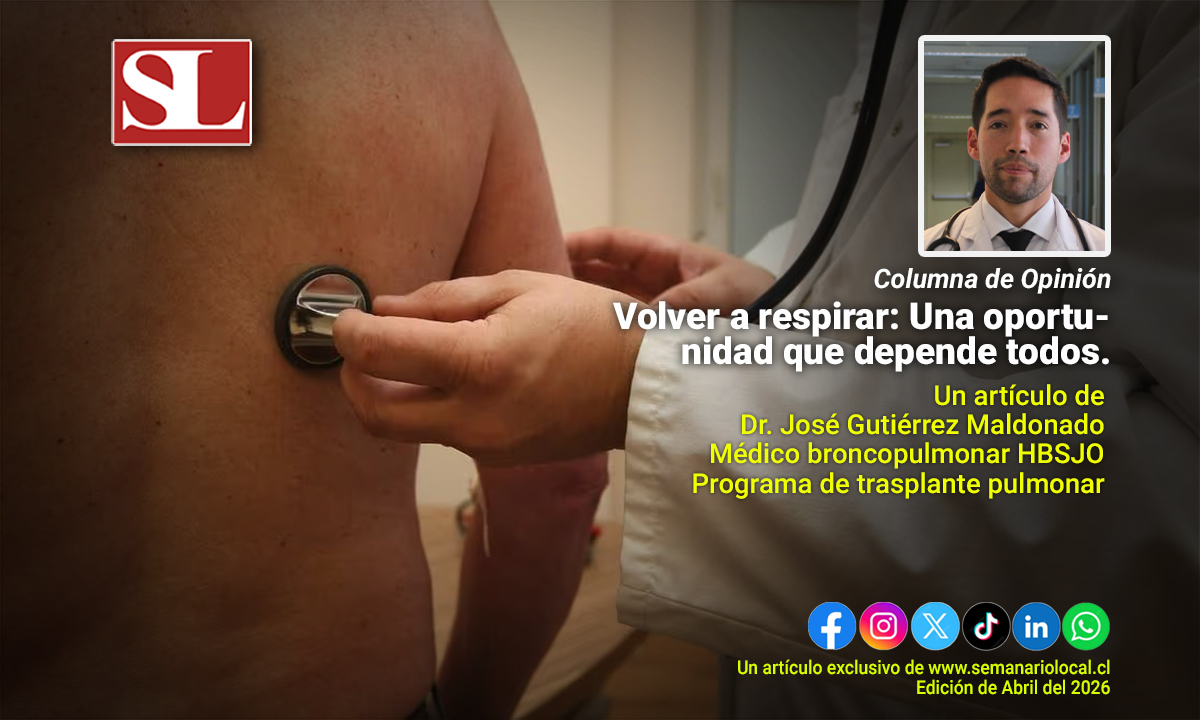 21 de Abril del 2026.- Hay pacientes que llegan a mi consulta sin poder subir una escalera. Personas que antes trabajaban el campo, cuidaban a sus nietos o simplemente disfrutaban caminar por la costanera, y que hoy necesitan oxígeno para hacer lo que todos hacemos sin pensar: respirar. Muchos de ellos tienen una sola opción de tratamiento que puede devolverles la vida: un trasplante pulmonar.