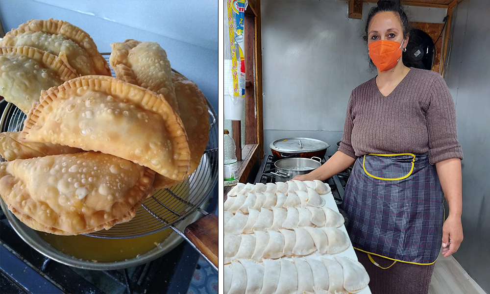 Hace cuatro años que Alejandra junto a su marido Juan Aucapán comenzó este emprendimiento luego de advertir lo bien que recibían sus empanadas los pasajeros de los buses donde subía a vender sus productos. “Hemos logrado con mucho esfuerzo y de a poco nuestras cosas estos cuatro años. Empecé vendiendo en los buses. Subía con mi cajita a vender empanadas a los buses y ahora estamos vendiendo acá en nuestro local, la gente nos ha apoyado bastante”, agradece la recolectora de orilla.