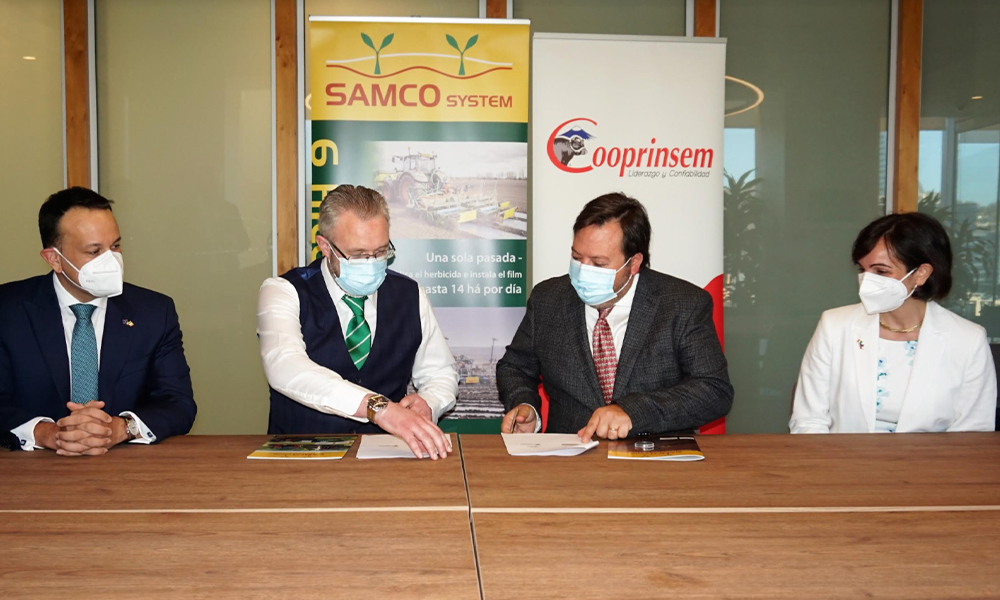 Fue así como en una ceremonia organizada por el Embajador de Irlanda en Chile, Paul Gleeson y la cual contó con el viceprimer ministro de la República de Irlanda, Leo Varadkar; la Cooperativa de los Agricultores, a través de su Gerente Comercial, Luis Silva, se reunió con el Director de Ventas de SAMCO, Matthew Shine, para adquirir durante los próximos 3 años nuevas maquinarias de siembra, fumigación y film oxobiodegrabable.