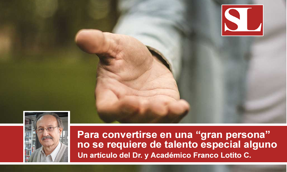 Ya sea que tomemos en consideración el ámbito laboral, social e, incluso, familiar, tengamos muy presente que para que un individuo pueda convertirse en una “gran persona”, dicho sujeto no requiere de ningún talento especial.