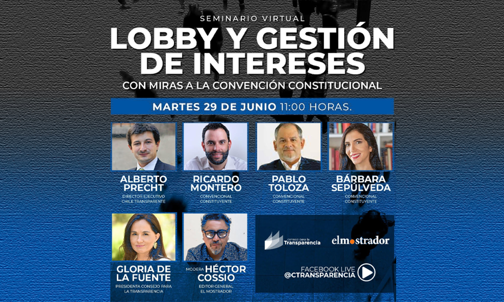 A sólo días del rito de instalación de la Convención Constitucional, órgano encargado de redactar la nueva Carta Fundamental de nuestro país, el Consejo para la Transparencia (CPLT) desarrollará un seminario virtual denominado “Lobby y gestión de intereses. Miradas en torno a la Convención Constitucional” el próximo martes 29 de junio a las 11:00 horas.