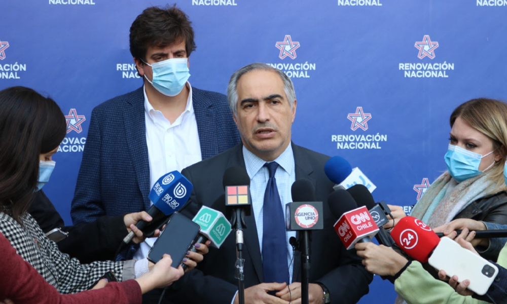 El presidente de Renovación Nacional, Francisco Chahuán, junto al secretario general de la colectividad, Diego Schalper, se refirieron al manejo del Gobierno en materia de seguridad, a la suspensión de la sesión de la comisión mixta que revisaría este lunes el proyecto de estado intermedio presentado por el Gobierno y a los dichos de la ministra Jeanette Vega respecto a la existencia de presos políticos.