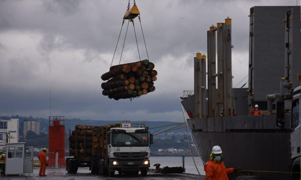 En el recinto portuario de EMPORMONTT se lleva a cabo la operación de carga de la primera exportación de rollizos de pino a granel que exportará el país y cuyo destino es el mercado de China. Se trata de 110 mil rollizos de pino insigne que viajarán al gigante asiático a bordo del carguero Union Ethos para ser utilizados en la confección de muebles y maderas para construcción.