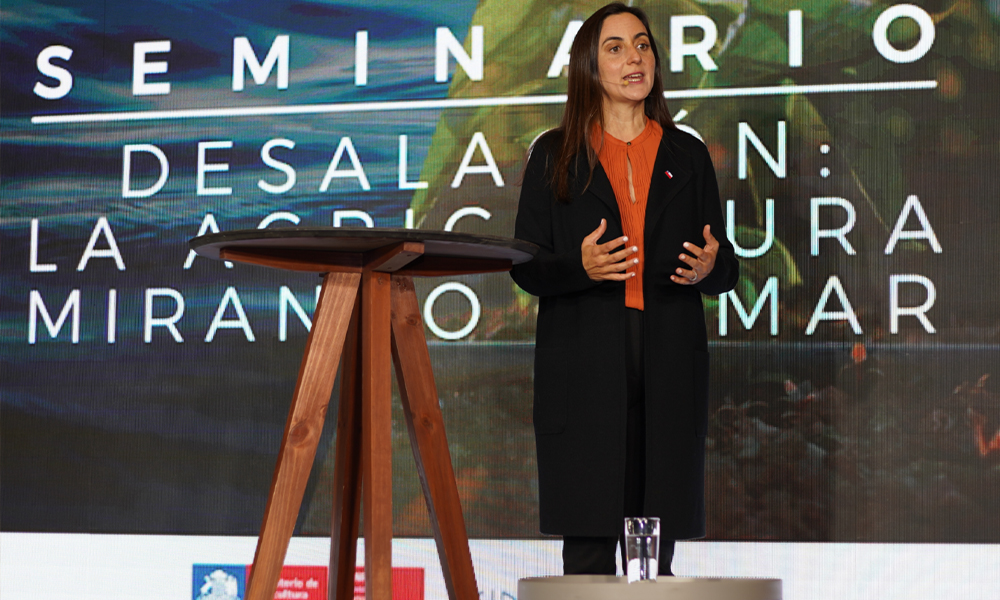“Creemos que la búsqueda de nuevas fuentes de agua es fundamental para el sector agrícola. Una opción para nuestro país en esta materia, con más de 6 mil kilómetros de costa, es la desalación de agua de mar, así como otras medidas como la recuperación y reúso de aguas servidas. Estas soluciones se han implementado por el momento para el agua potable y la minería en la zona norte de nuestro país. Por ejemplo, con agua desalada se abastece al 85% de la población de Antofagasta y al 100% de la de Mejillones. Debido principalmente a sus altos costos, esta solución no se ha materializado para la agricultura, pero creemos que en un mediano plazo podría ser una alternativa”, señaló la ministra de Agricultura, María Emilia Undurraga.