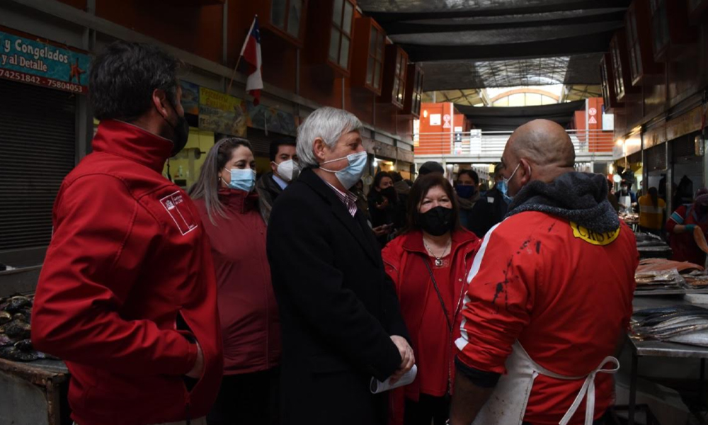 En un recorrido por el Mercado Municipal Presidente Ibáñez en la comuna de Puerto Montt, el Delegado Presidencial Regional, Carlos Geisse, junto al Seremi de Economía, Fomento y Turismo, Francisco Muñoz y el Vocero de Gobierno, Luis Toledo, dieron a conocer el inicio al pago del Bono Alivio a las micro y pequeñas empresas (MYPEs) de la región de Los Lagos.