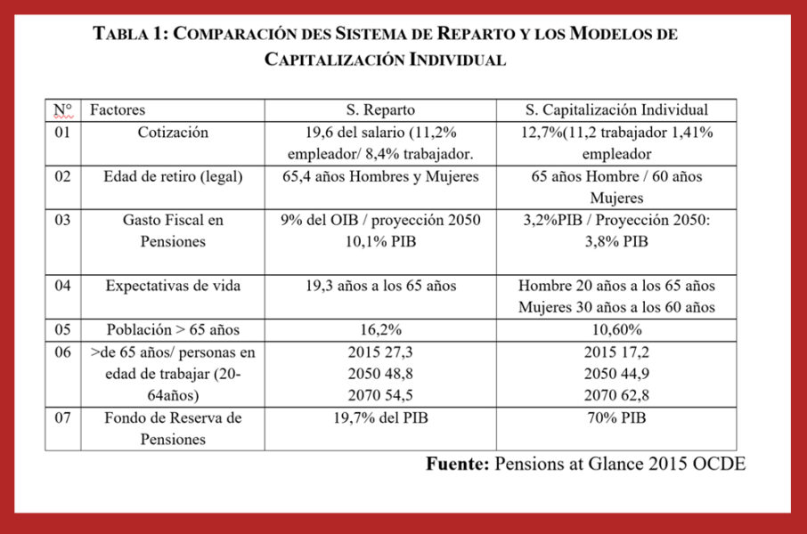 Para tener una óptica más detallada respecto a la diferencia entre el Sistema de Capitalización Individual y el de Reparto, se muestra el estudio de “Pensiones Glance 2015”, elaborado por la OCDE, donde se muestran claramente los resultados del análisis entre un sistema y otro, a saber: