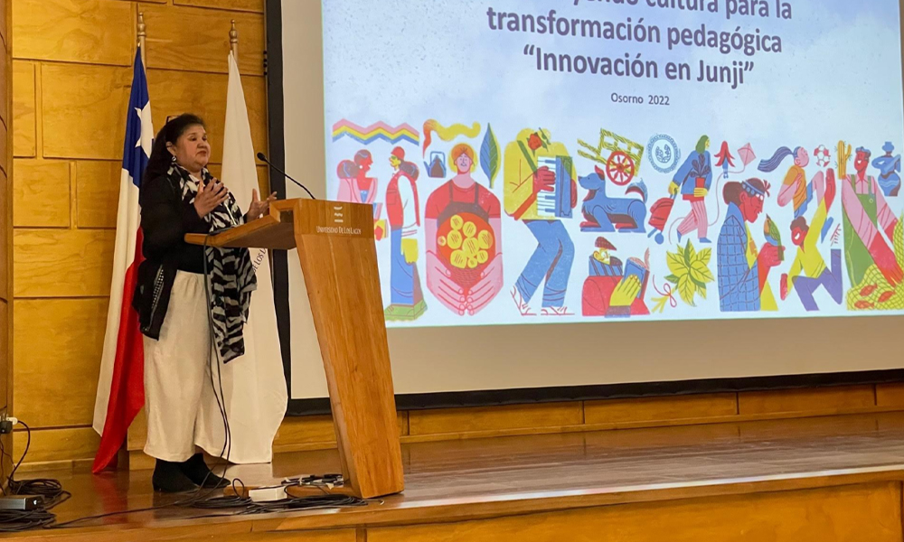 – «Los procesos de innovación en la Junta Nacional de Jardines Infantiles» que estuvo a cargo de la educadora de párvulo y funcionaria de la subdirección de Calidad Educativa JUNJI, Gladys Vallejos.