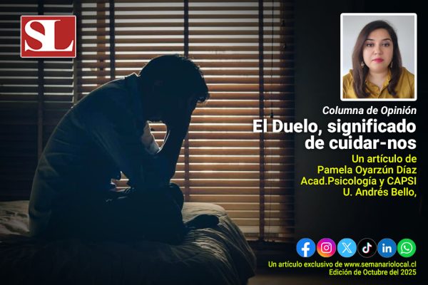 octubre 30, 2025 El Duelo, significado de cuidar-nosFrente al dolor de la pérdida de un ser queridos es mejor acompañar sin invadir, escuchar sin juzgar, validar sin apurar Leer Más Al día, Educación, Especialista, Opinión, Psicología #SemanarioLocal, Información, Noticias, Pamela Diaz Oyarzún, Región de los Lagos, Semanario Local