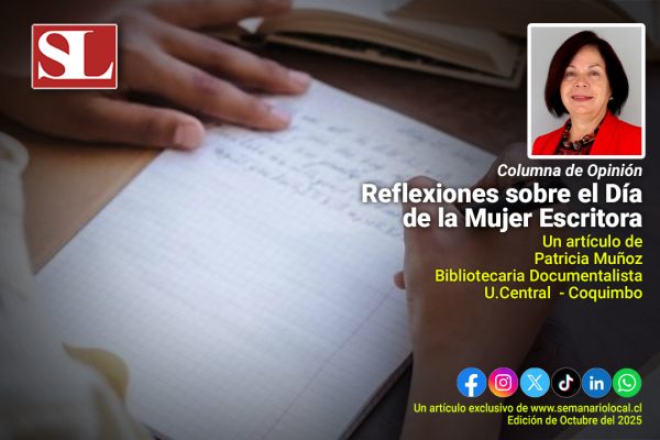 octubre 17, 2025 Reflexiones sobre el Día de la Mujer EscritoraHistóricamente la escritura ha estado presente en nuestras vidas hace miles de años, sin embargo, para una fracción de la humanidad estuvo vedada y restringida. Leer Más Al día, Arte, Literatura, Mujer y belleza #SemanarioLocal, Información, Noticias, Región de los Lagos, Semanario Local