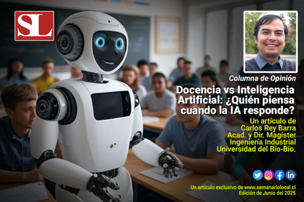 julio 1, 2025 Docencia vs Inteligencia Artificial: ¿Quién piensa cuando la IA responde?La inteligencia artificial (IA) ya está cambiando la educación chilena, alterando tanto el modo en que los estudiantes aprenden como la forma en que enseñan los docentes. Leer Más Al día, Educación, Opinión #SemanarioLocal, Carlos Rey Barra, Información, Noticias, Región de los Lagos, Semanario Local