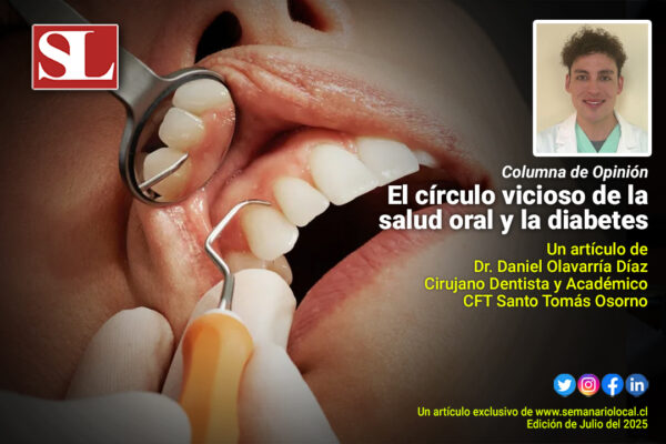 julio 19, 2025 El círculo vicioso de la salud oral y la diabetes: ¿Qué hay en común?La diabetes es una enfermedad crónica que ocurre cuando el cuerpo no produce suficiente insulina o no la utiliza de forma efectiva. Leer Más Al día, Educación, Familia, Salud #SemanarioLocal, Dr. Daniel Olavarría Díaz, Información, IP-CFT Santo Tomás, Noticias, Región de los Lagos, Semanario Local