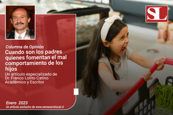 enero 9, 2023 Cuando son los padres quienes fomentan el mal comportamiento de los hijos“Es que está cansado”, “Es que todavía es pequeño y no entiende”, “Tiene hambre el pobre, por eso…”, etc., son frases que se escuchan muy a menudo y que sólo resultan ser perjudiciales... Leer Más Opinión Columna de Opinión, Educar, Franco Lotito Catino, Información, Noticias, Región de los Lagos, Semanario Local