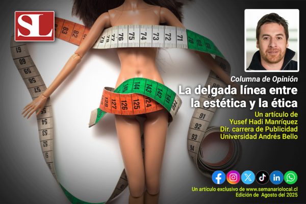 agosto 11, 2025 Delgada línea entre la estética y la ética: la publicidad que no queremos ¿hasta cuándo la publicidad de moda seguirá desentonando con el pulso social y los valores contemporáneos? Leer Más Al día, Educación, Opinión, Sociedad, Tendencias #SemanarioLocal, Educación, Estética, ëtica, Información, Noticias, Región de los Lagos, Semanario Local, Yusef Hadi Manríquez