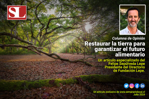 julio 28, 2024 Restaurar la tierra para garantizar el futuro alimentarioUn aspecto crucial es cómo estas prácticas pueden mejorar la seguridad alimentaria. Leer Más Al día, Opinión #SemanarioLocal, Felipe Sepulveda Lepe, Fundación Lepe, Información, Noticias, Región de los Lagos, Semanario Local