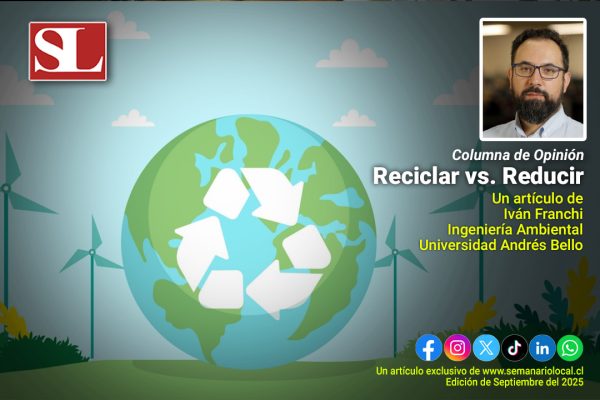 septiembre 28, 2025 Columna de Opinión: Reciclar vs. ReducirA pesar de los avances normativos, seguimos anclados en una lógica de consumo creciente y reciclaje insuficiente, que lejos de resolver el problema, lo perpetúa. Leer Más Academia, Medio Ambiente, Opinión #SemanarioLocal, Educación, Información, Iván Franchi, Noticias, Región de los Lagos, Semanario Local, Universidad Andrés Bello