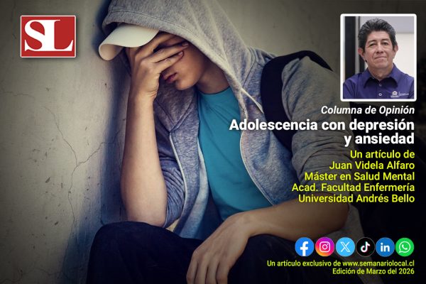 marzo 1, 2026 Adolescencia con depresión y ansiedadLa adolescencia es una ventana crucial de desarrollo cerebral comparable a la primera infancia. Leer Más Especialista, Jóvenes y Adolescentes, Opinión, Psicología, Salud Mental #SemanarioLocal, Información, Juan Videla Alfaro, Noticias, Región de los Lagos, Semanario Local