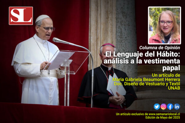 mayo 12, 2025 El Lenguaje del Hábito: análisis a la vestimenta papal tras la llegada del Papa León XIVCon la reciente elección del Papa León XIV, el mundo ha sido testigo no sólo de una transición espiritual del líder de la Iglesia Católica, sino que también de un retorno visual y simbólico a tradiciones profundamente enraizadas. Leer Más Academia, Al día, Análisis, Educación #SemanarioLocal, Información, Maria Gabriela Beaumont Herrera, Noticias, Papa León XIV, Región de los Lagos, Semanario Local, Tenida papal, Universidad Andrés Bello, Vestuario