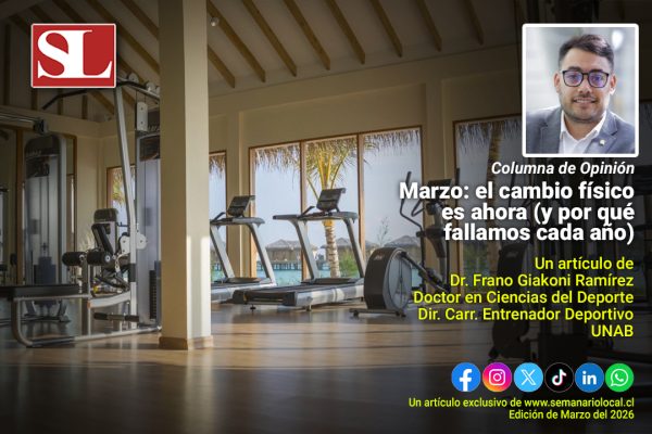 marzo 20, 2026 Marzo: el cambio físico es ahora (y por qué fallamos cada año)Desde las ciencias del deporte, el cuerpo necesita tiempo para adaptarse. Leer Más Al día, Deporte, Educación, Especialista, Opinión #SemanarioLocal, Información, Noticias, Región de los Lagos, Semanario Local, UNAB, Universidad Andrés Bello